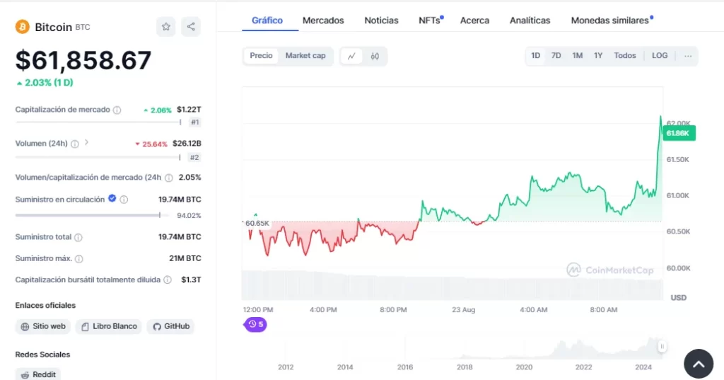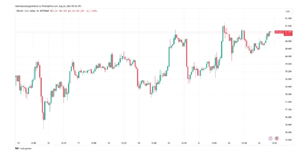 El 23 de agosto, Bitcoin alcanzó máximos intradía al volver a tocar los $60,000, una cifra psicológicamente significativa para el mercado, de hecho los ha superado y al momento de redactar este artículo, BTC cotiza $61,858.67, según CoinMarketCap. Este repunte se produce en un contexto en el que los mercados globales están a la espera del simposio anual de la Reserva Federal de Estados Unidos en Jackson Hole, un evento clave que podría determinar el rumbo de la política económica a corto plazo.